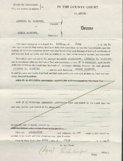 " Western Divorce Decree - Denver, Colorado - 1926"