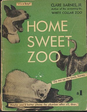 (71) BOOK: Home Sweet Home - 1949 - By Clare Barnes, Jr. -Condition: Good - Humerous book using B&W animal photos with amusing captions having to do with Daily Life at Home. Paper Back Edition. The Book Measures 6 1/2" by 8 3/4" and has over 72 pages. Outside spine has peeling. Cover has scraped areas and a bent corner Inside pages intact. Some yellowing. Price: $6.00 + shipping.