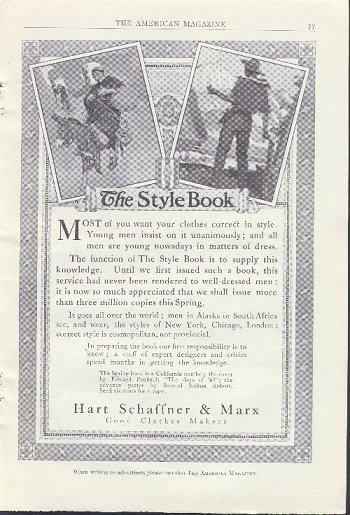 ADVERTISEMENT: Hart Schaffner & Marx - Men's Fashions. 1912 American Magazine.
