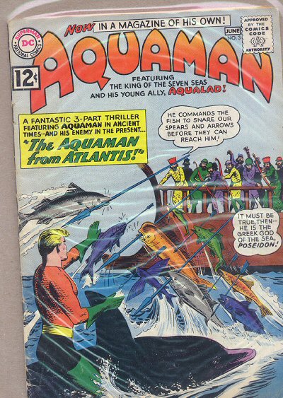 (1680) Aquaman - Superman Comics - June No. 3 - 1962 (First Series). -Condition: Very Good In heatsealed plastic bag. Three part thriller featuring Aquaman - "The Aquaman from Atlantis!" Written by Bob Haney and illustrated by Nick Cardy. Book measures 7" by 10". Price: $8.00 + shipping.
