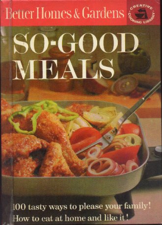 (930) So - Good Meals - Better Homes & Gardens - 1963 - First Printing - Hardback. -Condition: Excellent Part of The Creative Cooking Library. Full Color and B&W Photos throughout the book. One hundred tasty ways to please your family! How to eat at home and like it! Main Categories include: Meats Men Like, The Kids are Cooking, Buy a Bargain - Fix a Feast, Low - Calorie Cooking, Do - Ahead Dinners. The book measures 7" by 10" and has 62 pages. The Cover is Plastic Coated. - First Printing Edition. Price: $8.00 + shipping.